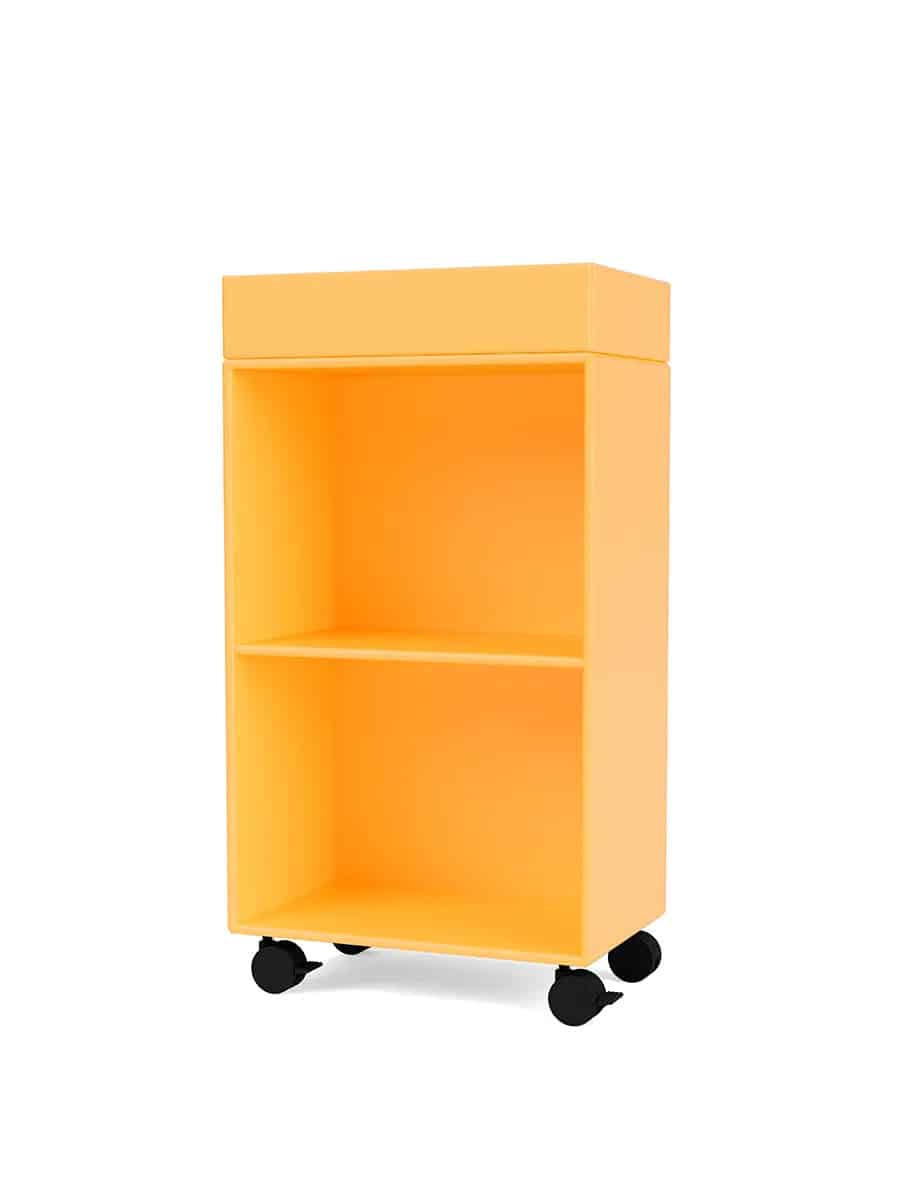 Preppy er en badeværelsesvogn og mobil opbevaring på hjul lavet af 12 mm vandafvisende MDF. Modulet har to rum og en bakke på toppen. Preppy er ideel til opbevaring af håndklæder, wellness- og skønhedsartikler eller styling såsom planter. Preppy vognen e
