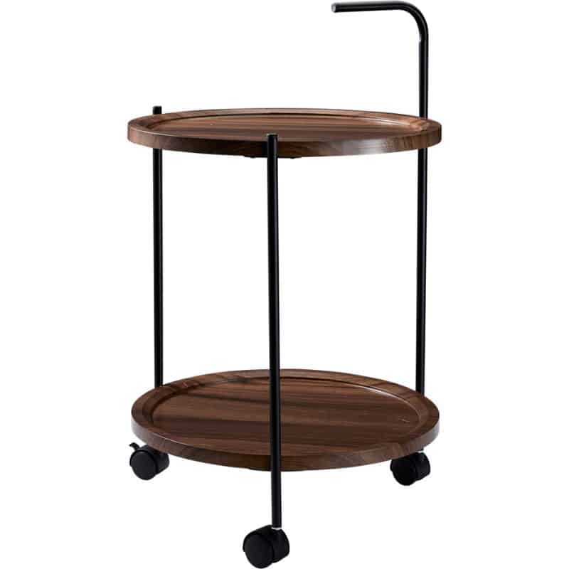 Elegant og mobilt sidebord med 2 etager i mørkt trælook og sort metal. Ideelt som barvogn eller ekstra afsætningsplads til fest og hverdag. Ø40xH67 cm.